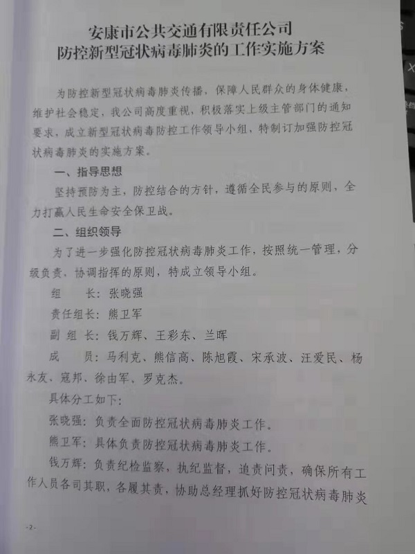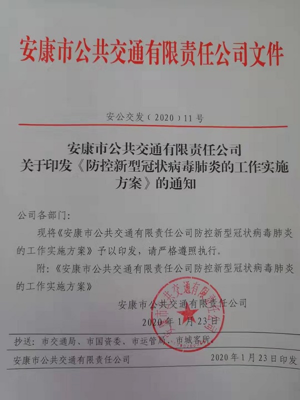 在節(jié)日前夕,公司召開疫情防控工作緊急部署會,成立新型冠狀病毒肺炎防控工作領(lǐng)導(dǎo)小組,部署防控疫情工作,要求各部門要本著“嚴(yán)密防控疫情、確保春運安全”的工作思路,全力以赴做好防控工作,發(fā)現(xiàn)問題第一時間上報,保證公交乘車環(huán)境安全。