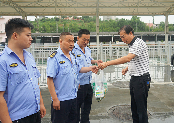 7月17日,市公交公司黨委書記、董事長(zhǎng)張曉強(qiáng)、總經(jīng)理熊衛(wèi)軍、黨委副書記錢萬(wàn)輝一行為一線職工送去“夏日清涼”和關(guān)懷,讓他們?cè)诰€路上感受“涼爽”,不斷提升公交運(yùn)營(yíng)服務(wù)質(zhì)量。