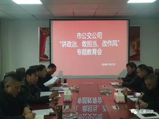 12月24日上午,市公交公司黨委召開“講政治、敢擔(dān)當(dāng)、改作風(fēng)”專題教育會,黨委書記、董事長張曉強(qiáng)主持會議并講話,公司黨政領(lǐng)導(dǎo)班子成員參加會議,中層以上干部列席會議。會議傳達(dá)學(xué)習(xí)了市國資委《關(guān)于在全市工信(國資)系統(tǒng)領(lǐng)導(dǎo)干部中開展“講政治、敢擔(dān)當(dāng)、改作風(fēng)”專題教育實(shí)施方案》、市紀(jì)委《關(guān)于集中開展違規(guī)收送禮金問題專項(xiàng)整治的工作方案》《關(guān)于集中整治形式主義、官僚主義的工作安排》等文件。